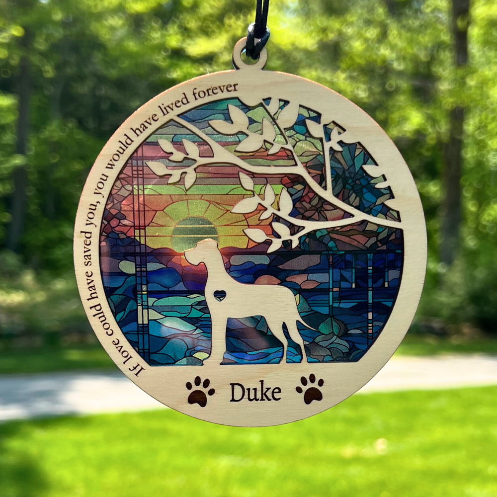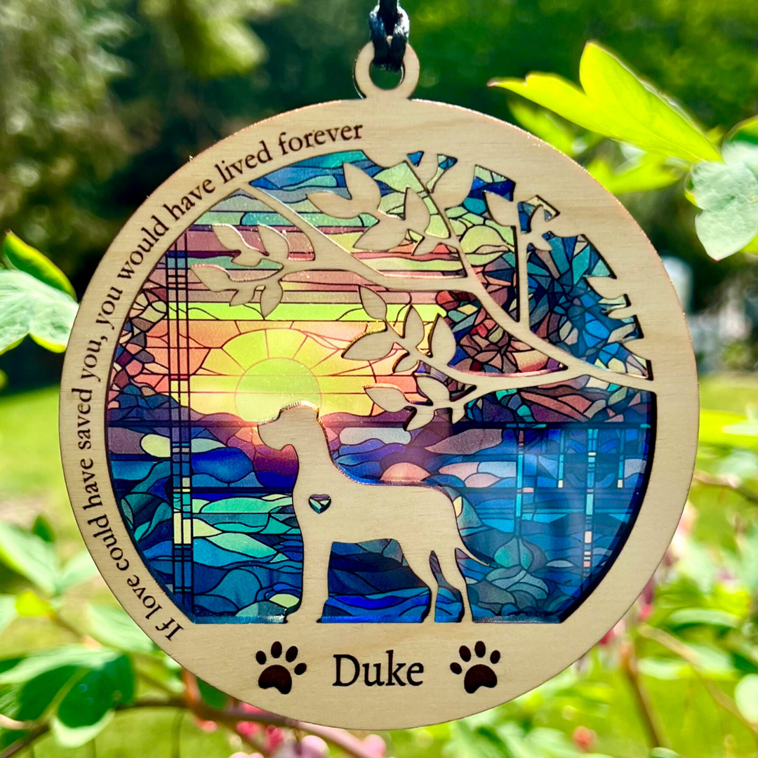 Our beautiful suncatchers are the perfect way to honor your pets - each customized with their breed, name, and date. These unique pieces make a lasting tribute to the pets you cherish.